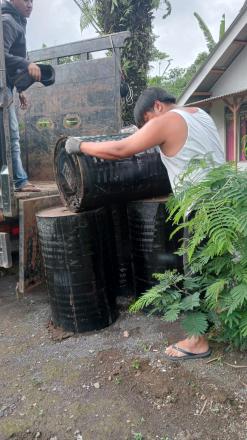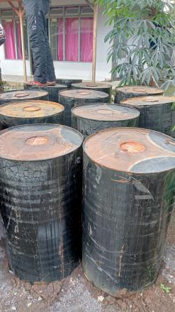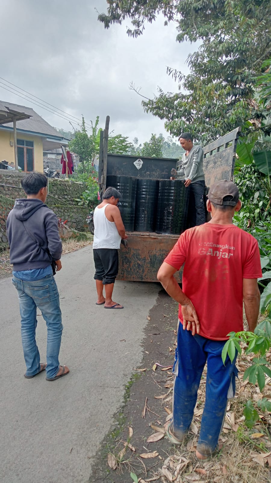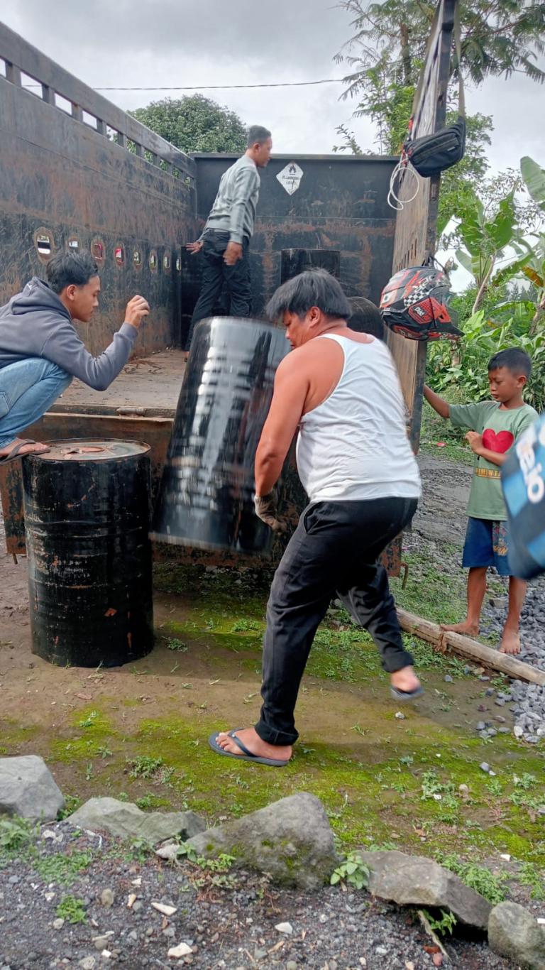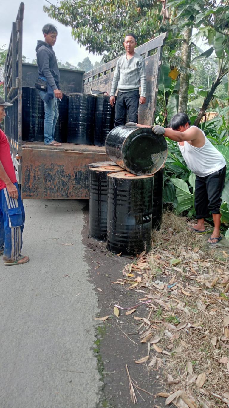 kedatangan droping aspal pembangunan jalan dusun karanganyar desa burno Kec. Senduro Kab. Lumajang .