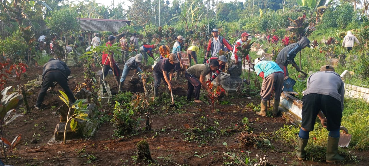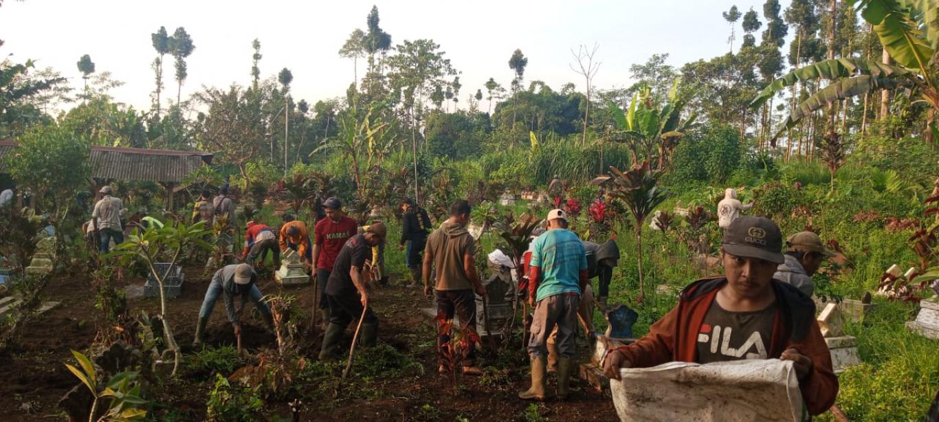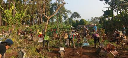 kegiatan pembersihan area makam dusun karanganyar menjelang lebaran